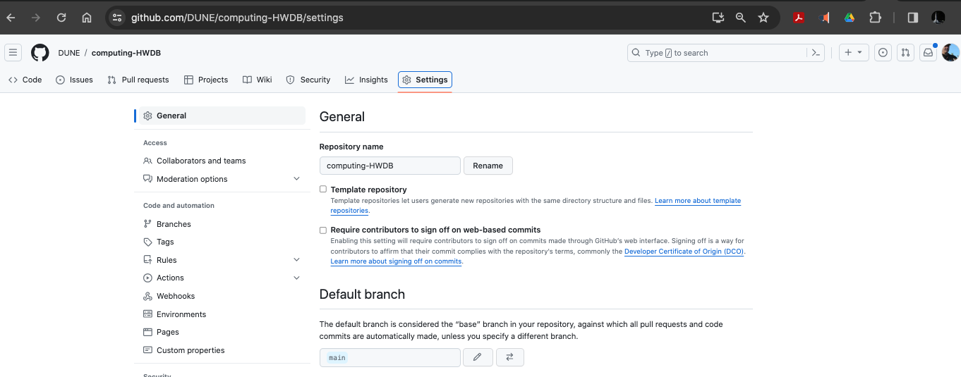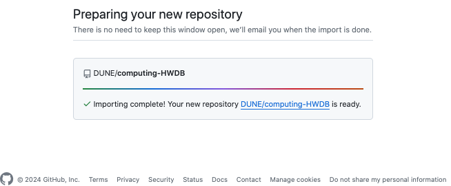 Once prepared, a link to your repo will be provided. Go to https://github.com/DUNE/computing-HWDB to verify the base installation.