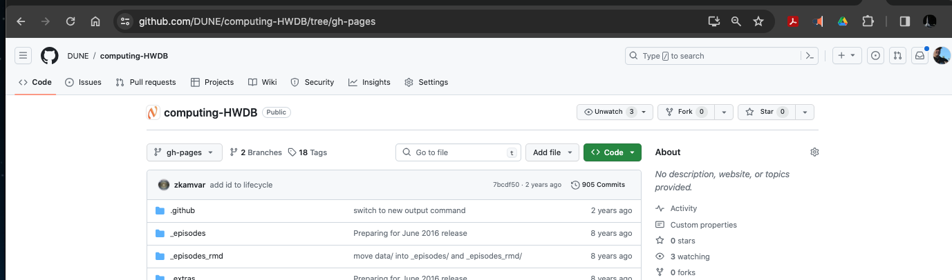 In this lesson we will build a github.io site for the upcoming training of the DUNE Computing HWDB which has learning materials presented using the Software Carpentry (SC) templates.