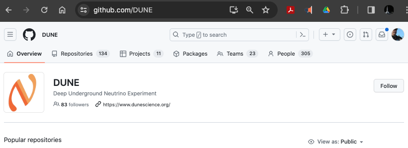follow the green New Repository tab in the top menu and select the green New repository link (https://github.com/organizations/DUNE/repositories/new)
